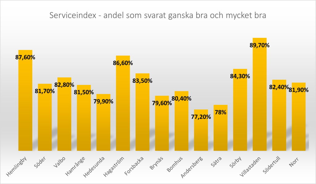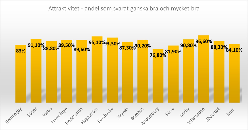 Resultatet för 2025 ligger i linje med utfallen från tidigare år och vi har nu ett stabilt underlag att arbeta vidare med. Här nedan kan du läsa mer om årets resultat och även se hur varje område eller stadsdel besvarade den inom respektive område.