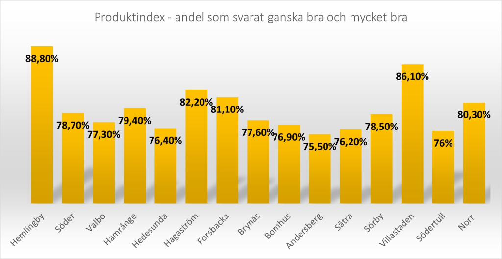 Inom produktindex ligger vi stabilt jämfört med tidigare år. Där vi ser den tydligaste ökningen är kopplad till utemiljön, och då främst när det kommer till tillgången till bänkar och bord. Kul!